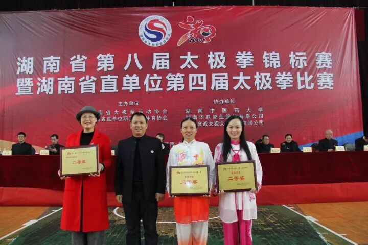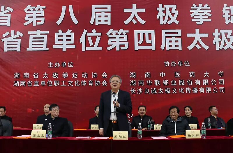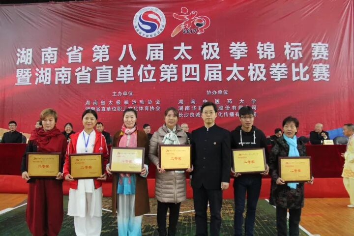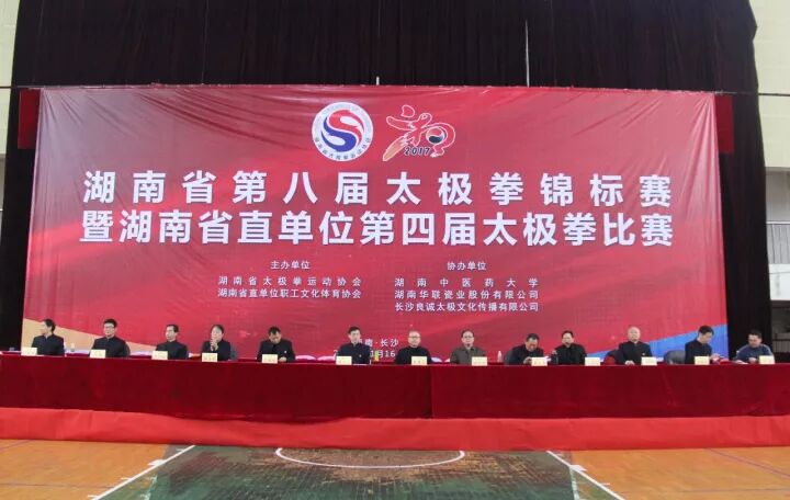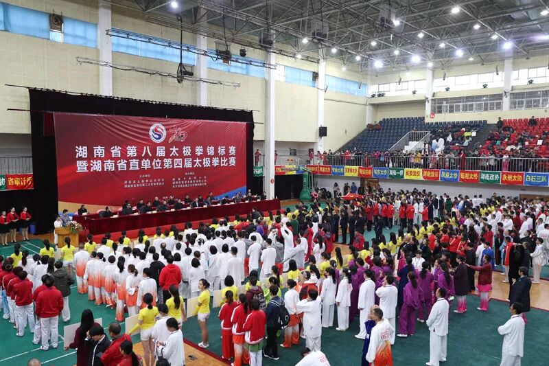 2017年11月17日至19日,省直文体协会、省太极拳运动协会在湖南中医药大学东塘校区体育馆共同举办了湖南省第八届太极拳锦标赛暨湖南省直单位第四届太极拳比赛。省政协副主席、省文联主席欧阳斌出席开幕式并宣布比赛开幕,省直工委副书记、省直工会主席、省直文体协会会长谢立三,省体育局副局长杨再辉,湖南中医药大学校长、湖南省中医药研究院院长、博士生导师谭元生分别在开幕式上致辞。省体育总会专职副主席冯湘江,武式太极拳第六代衣钵传承人郝吟如,省直工会副主席、省直文体协会执行会长艾超越,省太极拳运动协会常务副主席、秘书长黄建良,省太极拳运动协会副主席、省直文体协会太极拳分会会长杨晶星,省太极拳运动协会副主席廖菁等领导出席开幕式或其他活动。